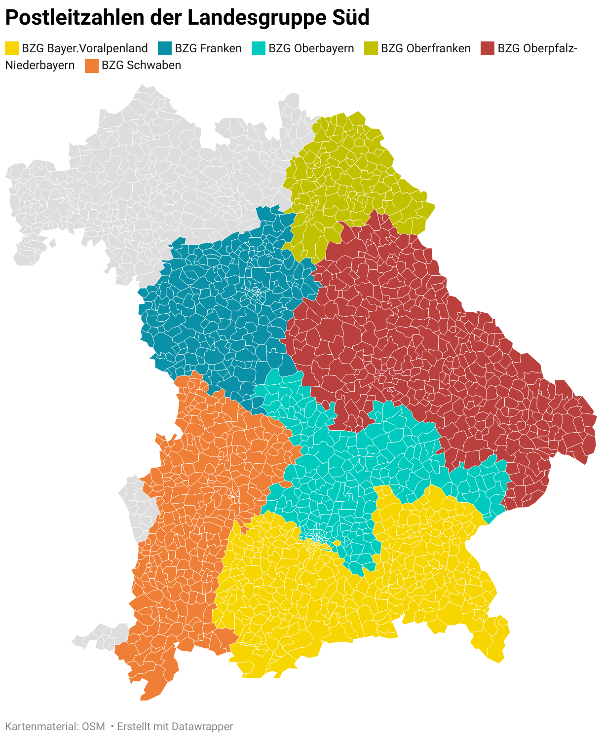 Bezirksgruppe Franken https://bzg-franken.de Die Bezirksgruppe Franken umfasst die folgenden PLZ-Bereiche: 89448 – 91249 91290 – 91999 95710 – 96999 |